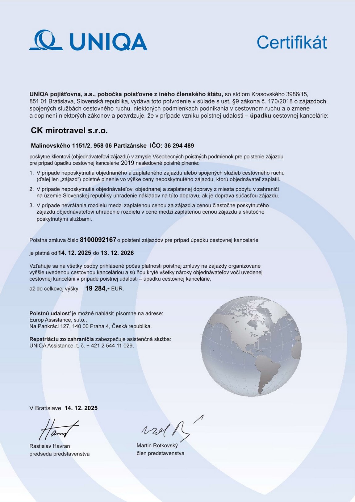 Poistenie CK mirotravel s.r.o.,proti úpadku